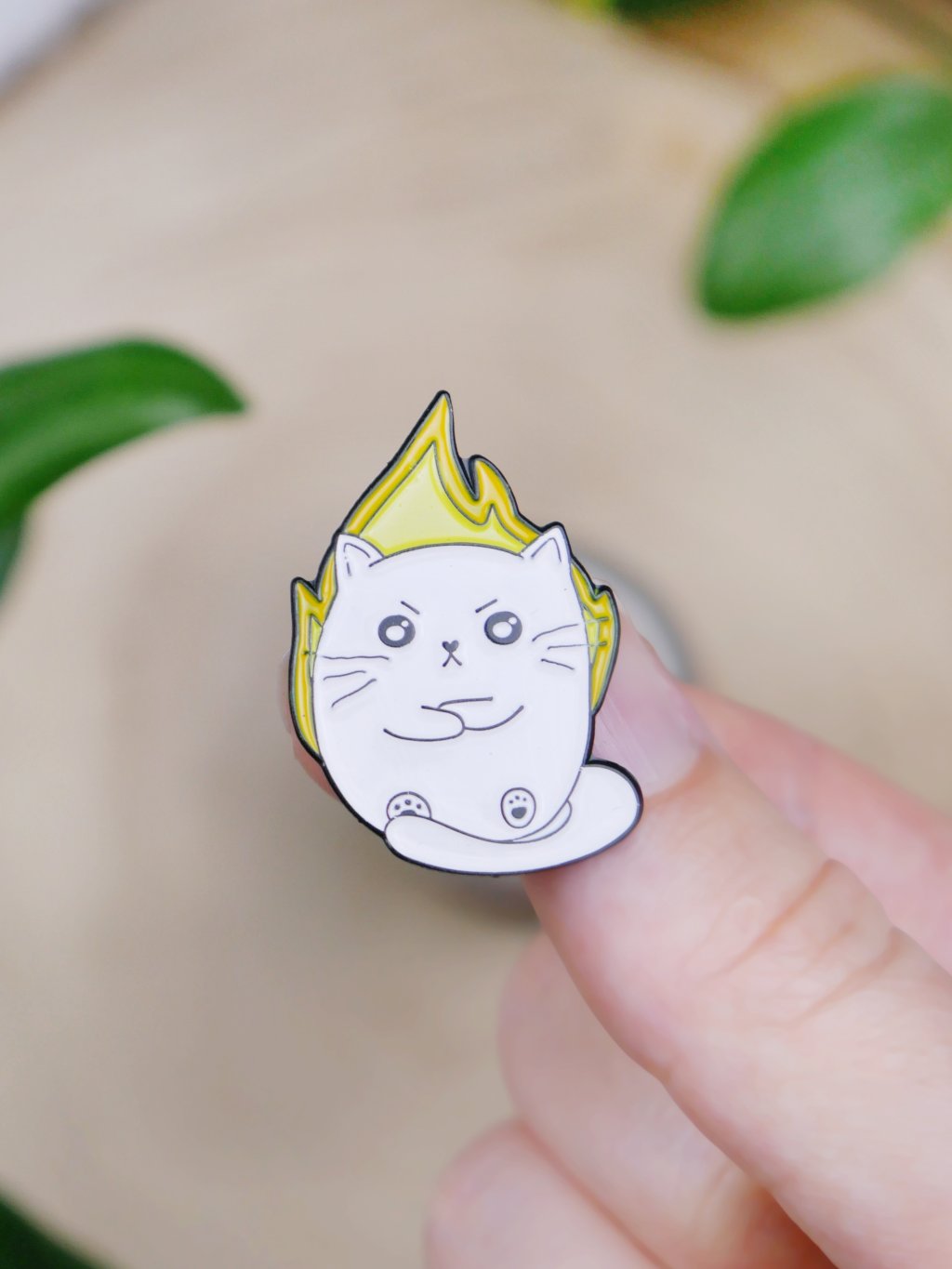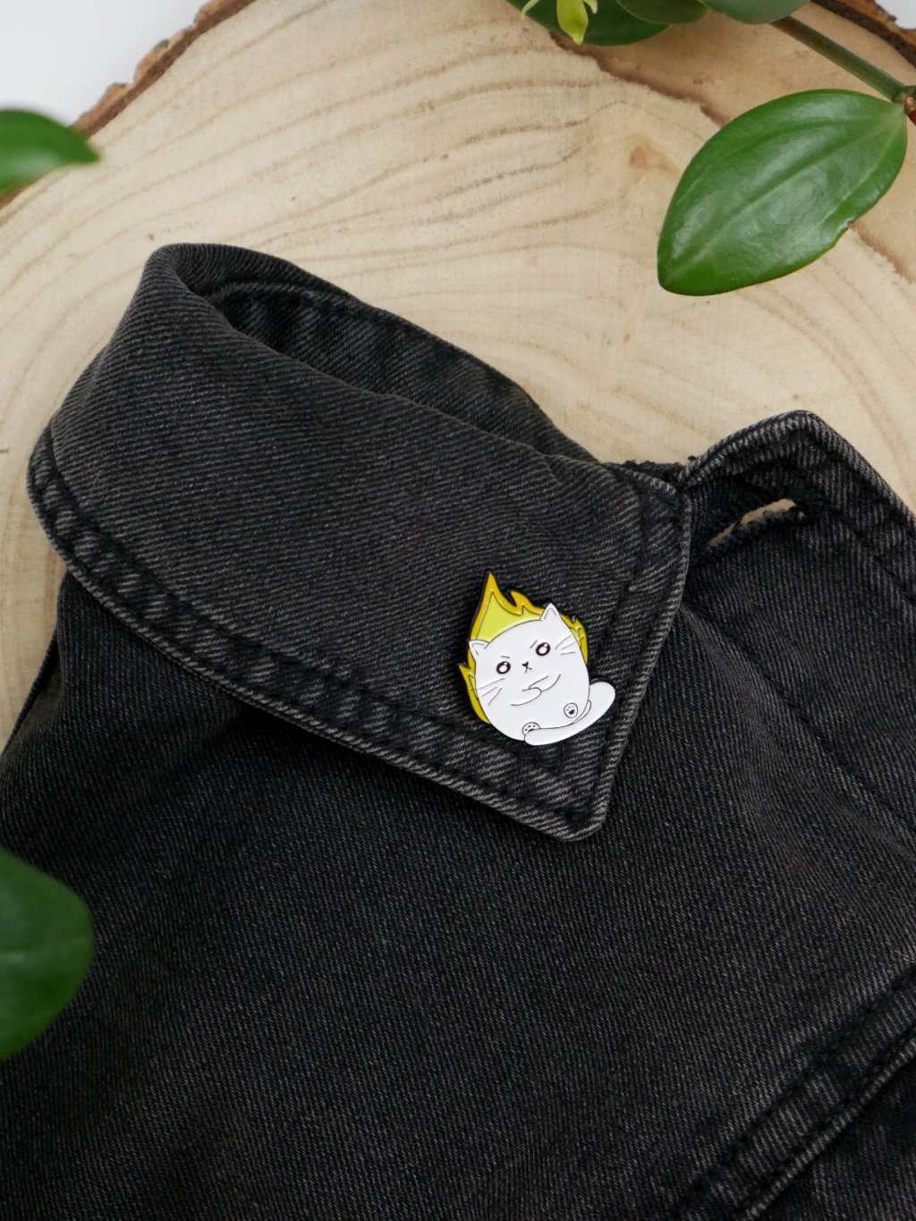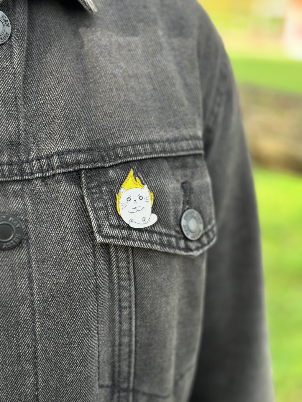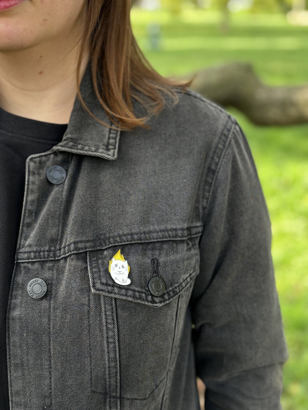 Malý odznáček s velkým významem a autorskou ilustrací kočky.