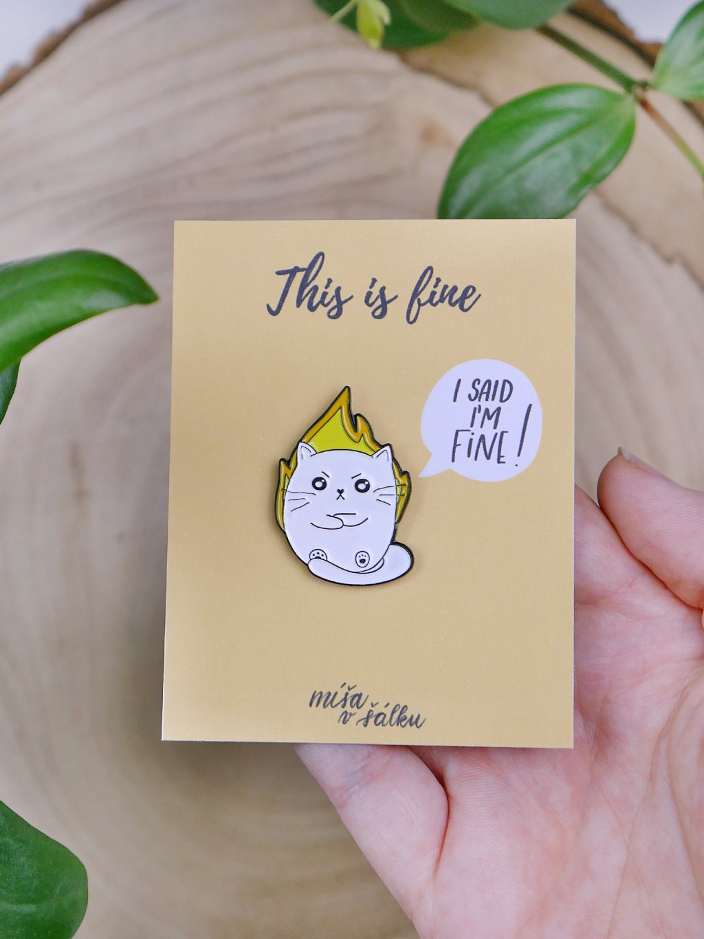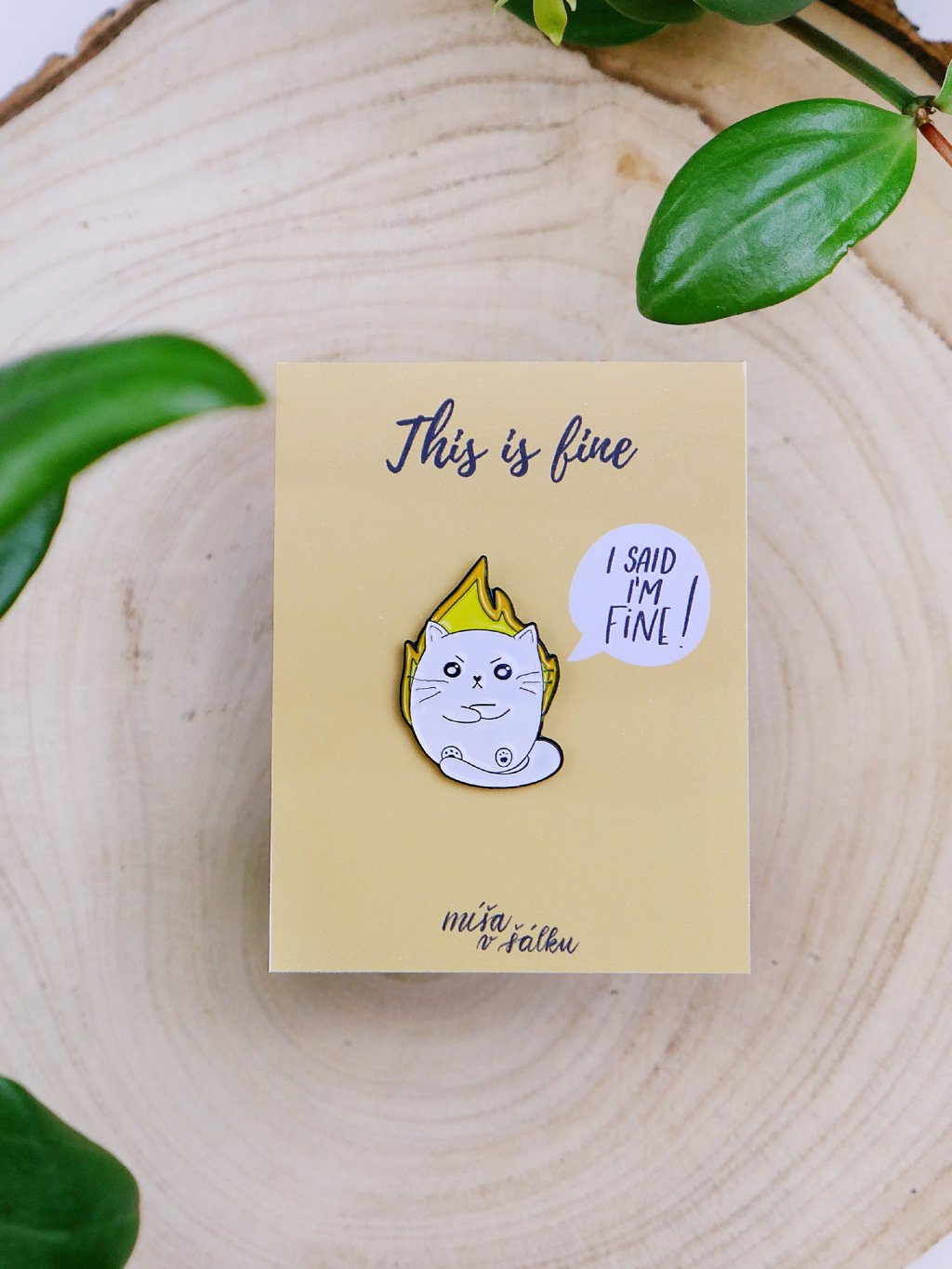 Někdy je toho prostě tolik, že vám nezbývá, než sedět uprostřed toho chaosu a nechat doutnat poslední zbytky trpělivosti, které vám zbývají. Pin s naší Lunou the Cat v oblíbeném motivu s plamínkem bude perfektní drobnost pro každého, kdo se často pohybuje na hraně možností a příčetnosti. :) Takového člověka poznáte podle jeho typické plamenné hlášky: To je v pohodě. Říkám, že jsem v pohodě. VŠECHNO-JE-V-POHODĚ!