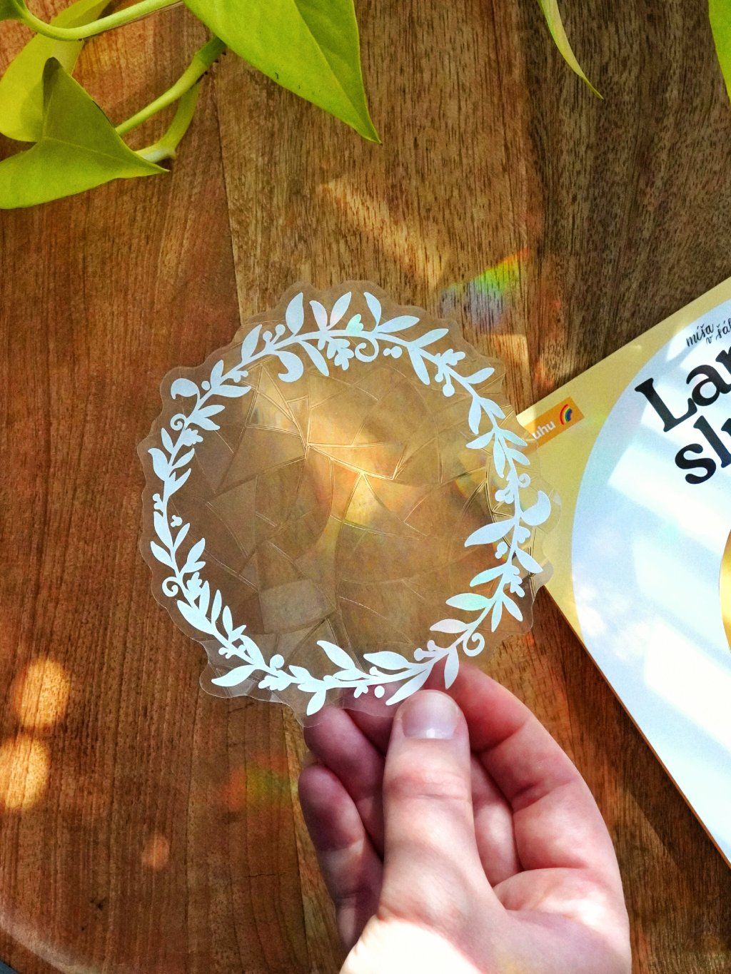 Pozvěte si domů duhu! 🌈 S nalepovacím lapačem slunce přilákáte barvičky přímo k vám do pokoje a rozveselíte si každý den. Tento kousek zdobí ručně psaný nápis Here comes the sun v bílém provedení.
