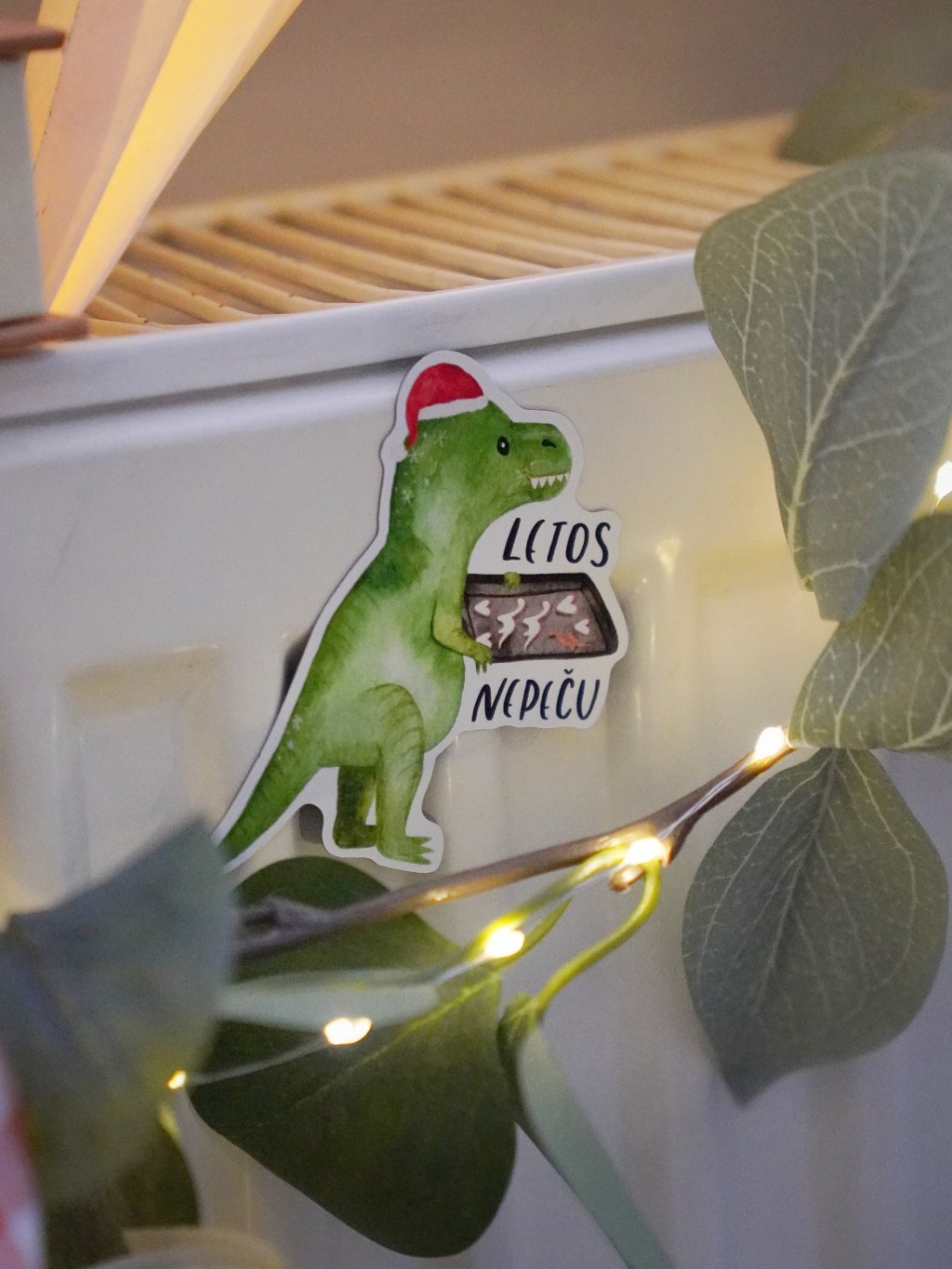 Vánoční dekorace nemusí být určené jen na poličku. Co dát vánoční výzdobu třeba na lednici? Dekorační magnet s motivem dinosaura vám v kuchyni vykouzlí příjemnou atmosféru a pomůže vám přichytit i ozdobit obrázky nebo třeba pohlednice, které vám během adventu přistanou ve schránce. Jo a - bude i super vtipným vánočním dárkem!