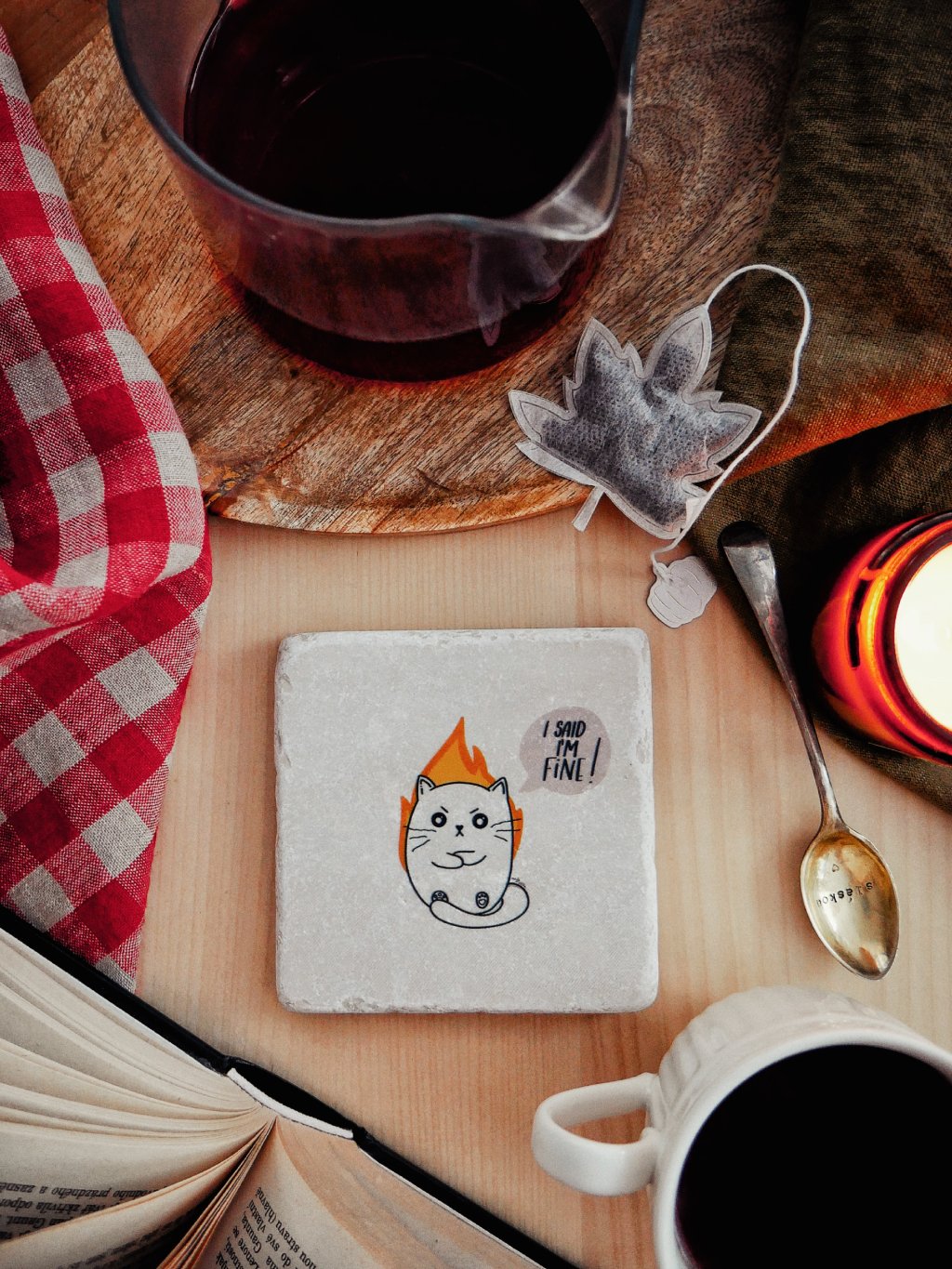 Někdy je toho prostě tolik, že vám nezbývá, než sedět uprostřed toho chaosu a nechat doutnat poslední zbytky trpělivosti, které vám zbývají. Podtácek s naší Lunou the Cat v oblíbeném motivu s plamínkem bude perfektním dárkem pro každého, kdo se často pohybuje na hraně možností. A příčetnosti. :) Takového člověka poznáte podle jeho typické plamenné hlášky: To je v pohodě. Říkám, že jsem v pohodě. VŠECHNO-JE-V-POHODĚ!