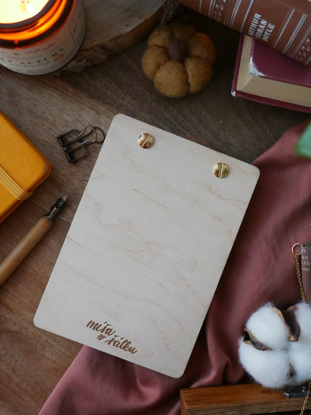 - Kalendář je upevněný na dřevěné destičce, kterou pro vás navrhl a vyrobil Vojta