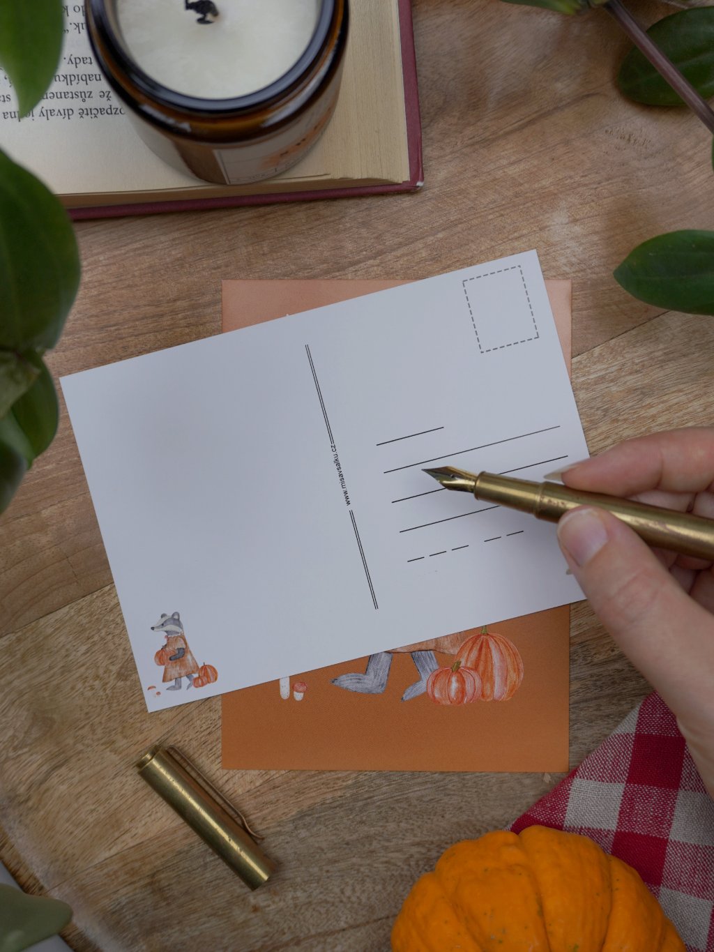- Originální podzimní pohlednice je tištěná na křídovém papíře o gramáži 300 g/m²