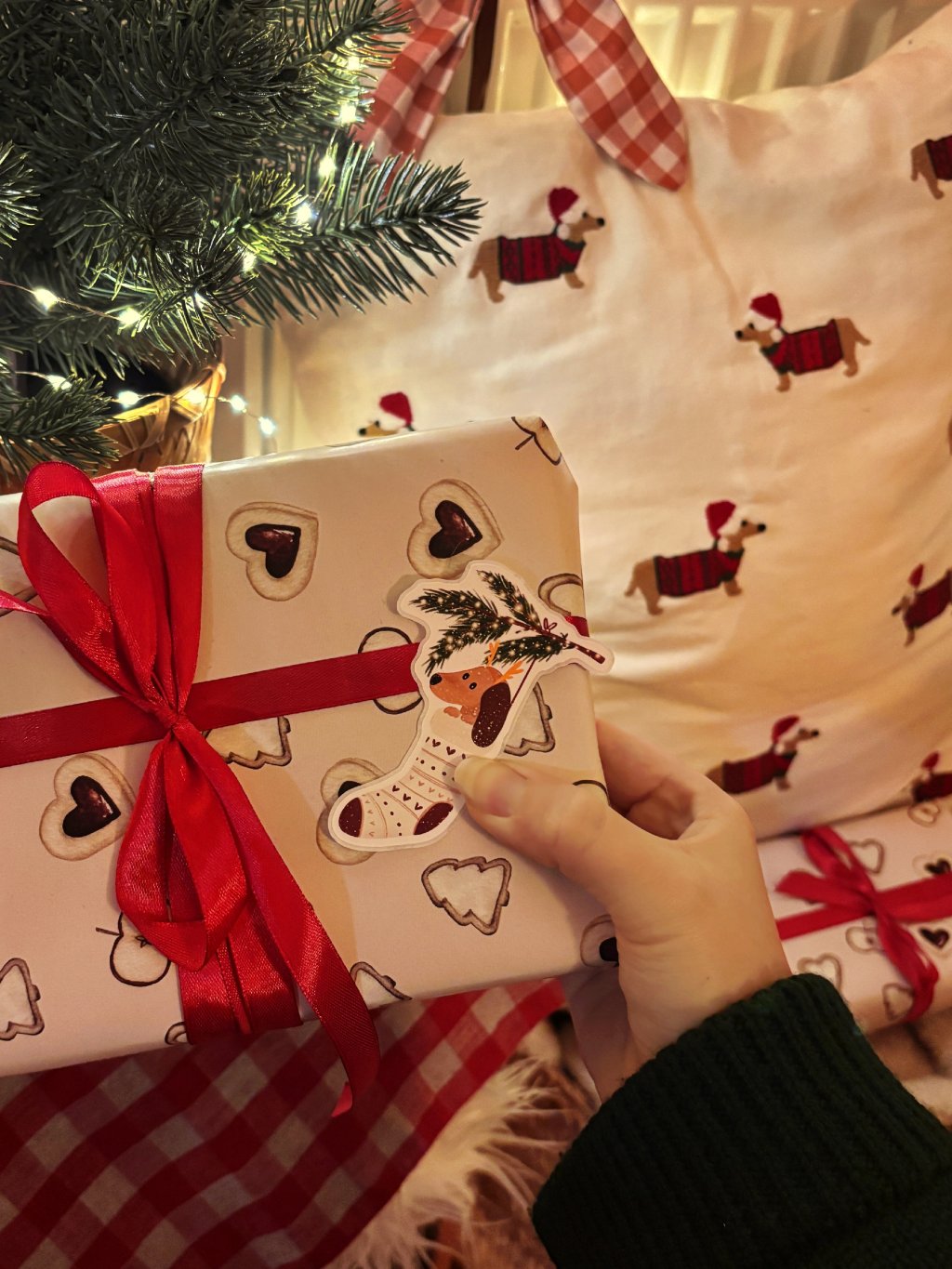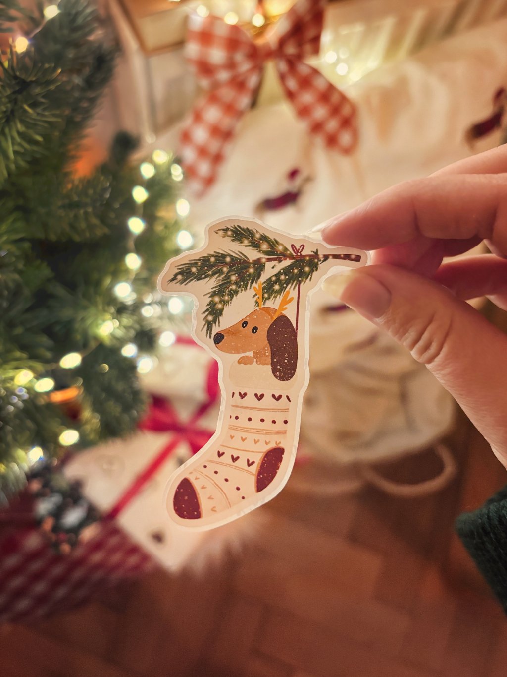 Samolepku můžete nalepit do diáře, na jeho desky, na čtečku knih, obal na mobil nebo třeba připnout na nástěnku. Věnovat ji můžete i jako drobný vánoční dárek milovníkům pejsků nebo hrdému služebnictvu všech vznešených jezevčíků s krátkýma, leč rychlýma nožkama!