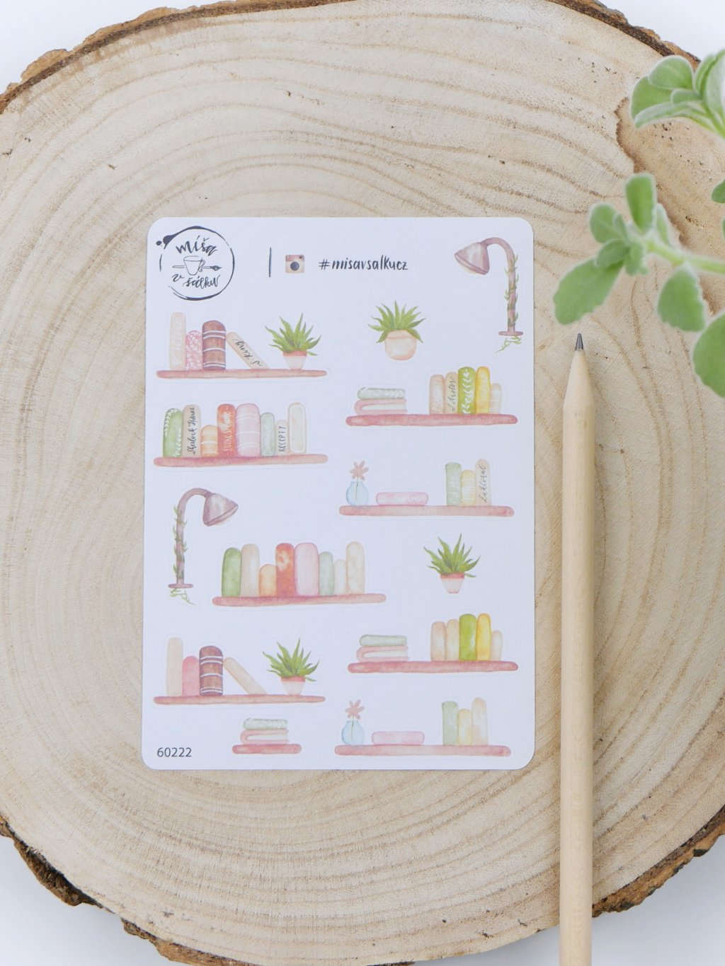V aršíku najdete samolepky s motivy knih, lampiček a polic.