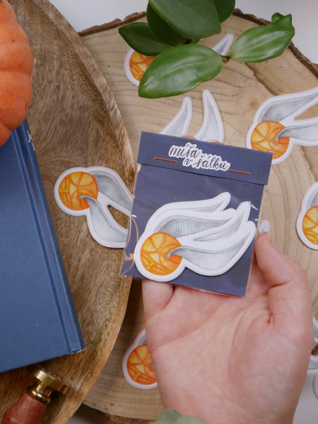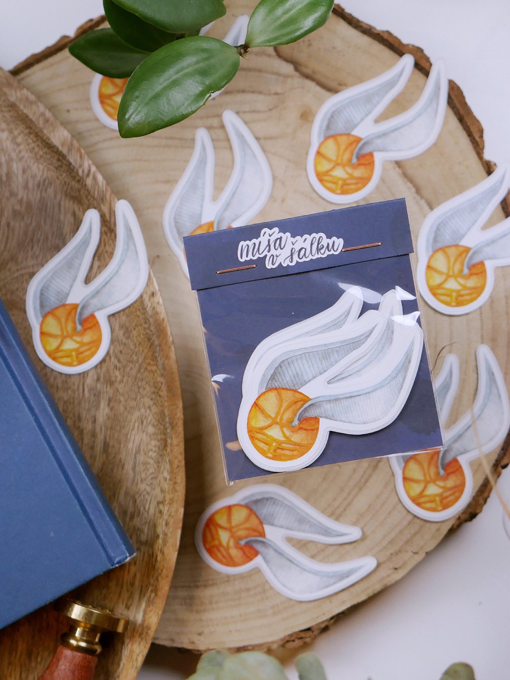 Samolepky jsou ozdobené autorskou akvarelovou ilustrací. Využijete je na zdobení diáře, k ozdobení fotoalba i pro různé DIY projekty. Nebo k dalším mudlovským účelům.