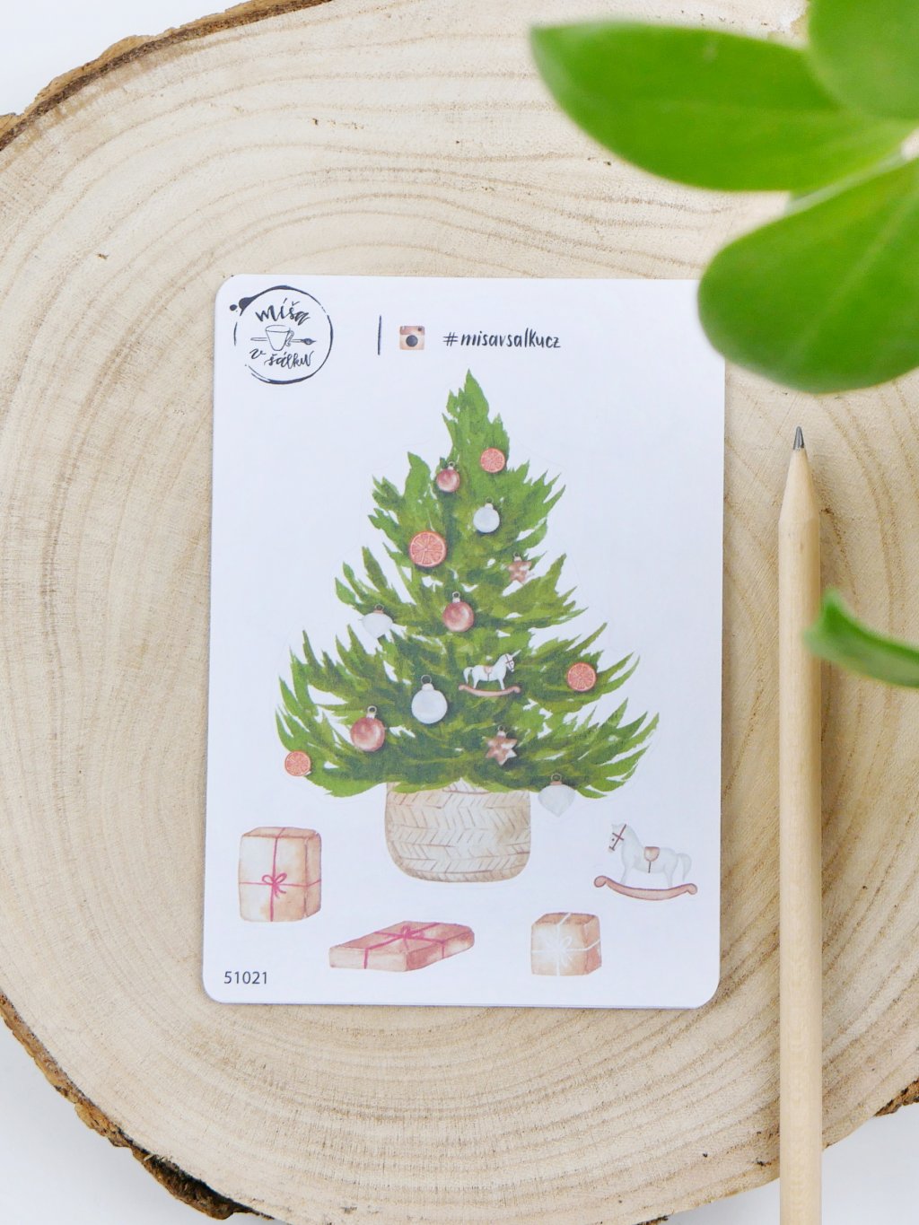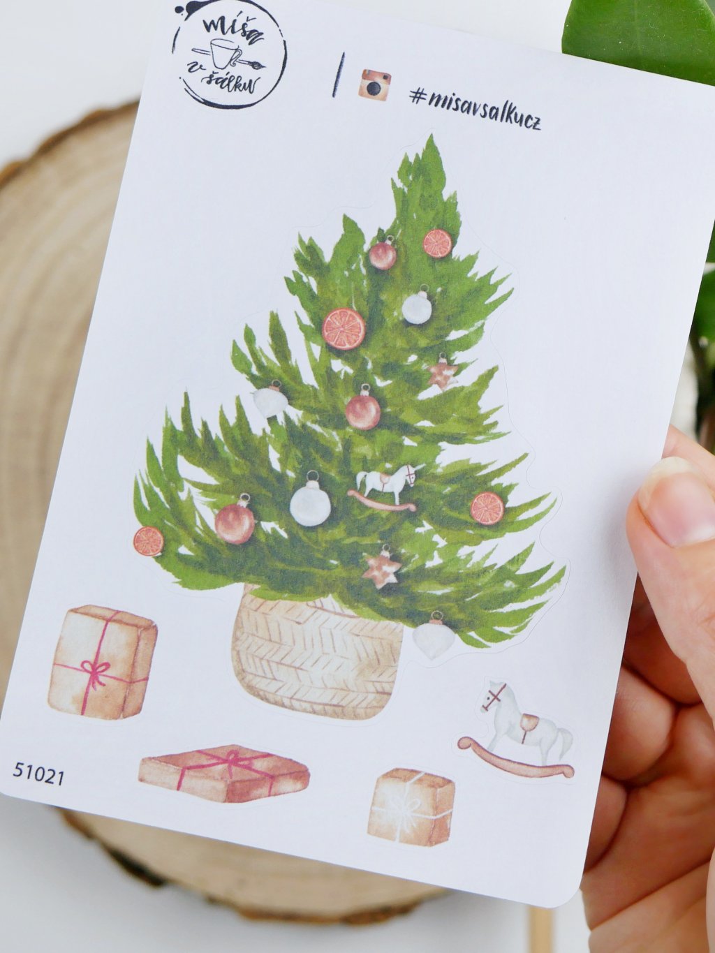 Samolepku vánočního stromečku využijete pro zdobení diáře, vánočního přání, dárků nebo fotoalba.