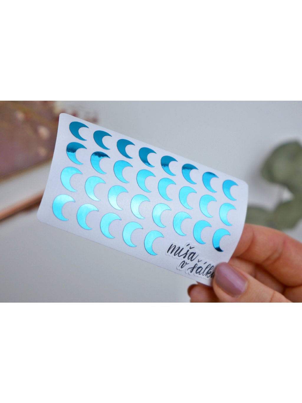 Elegantně lesklé vinylové samolepky dodají pozlátko nejen stránkám vašeho diáře, ale také jeho deskám! Vinyl skvěle drží na různých hladkých materiálech, proto si se samolepkami lesklých modrých měsíců ozdobíte například hrníčky, potravinové dózy nebo třeba šuplíky plné papírenských radostí. :)