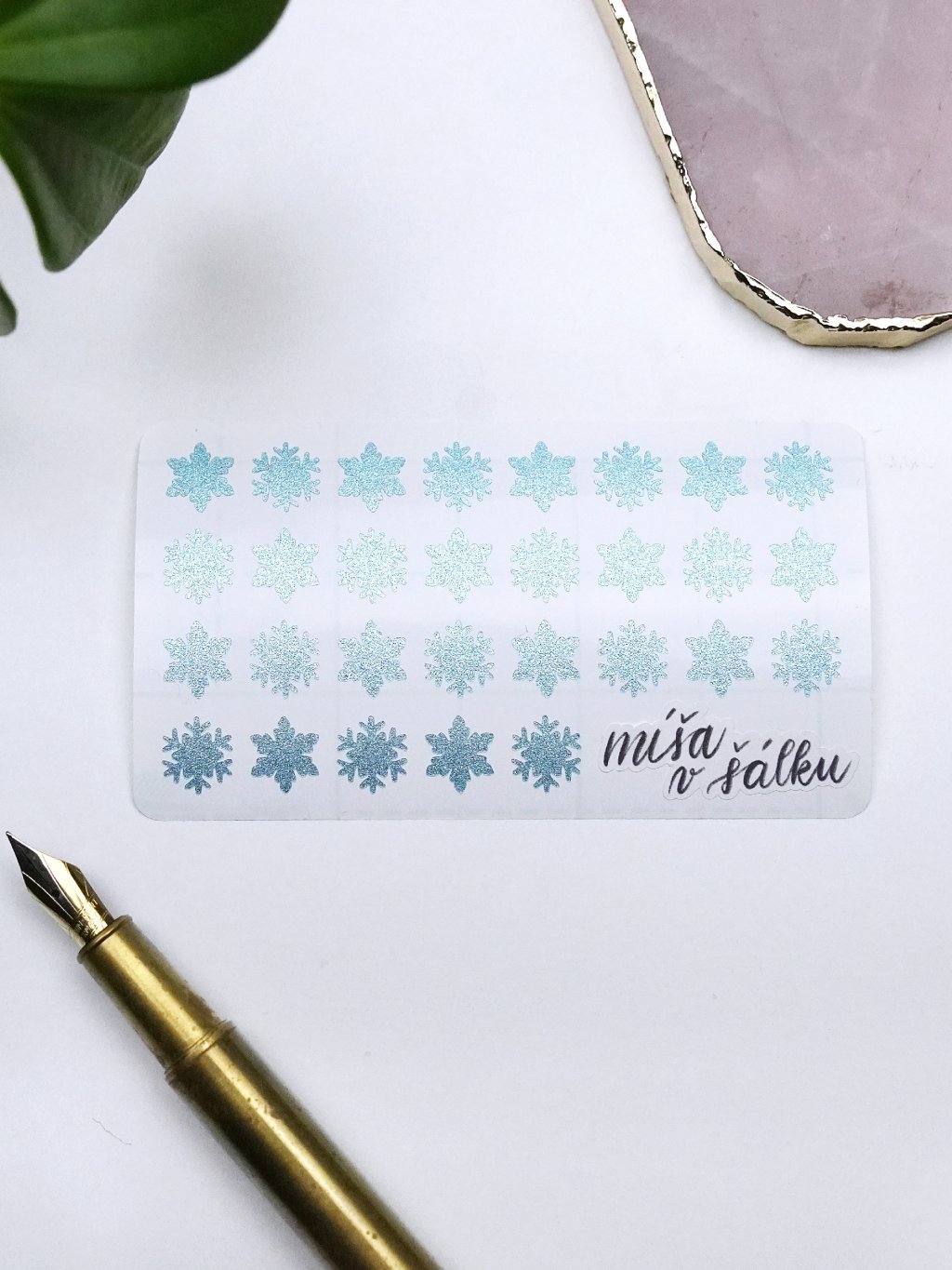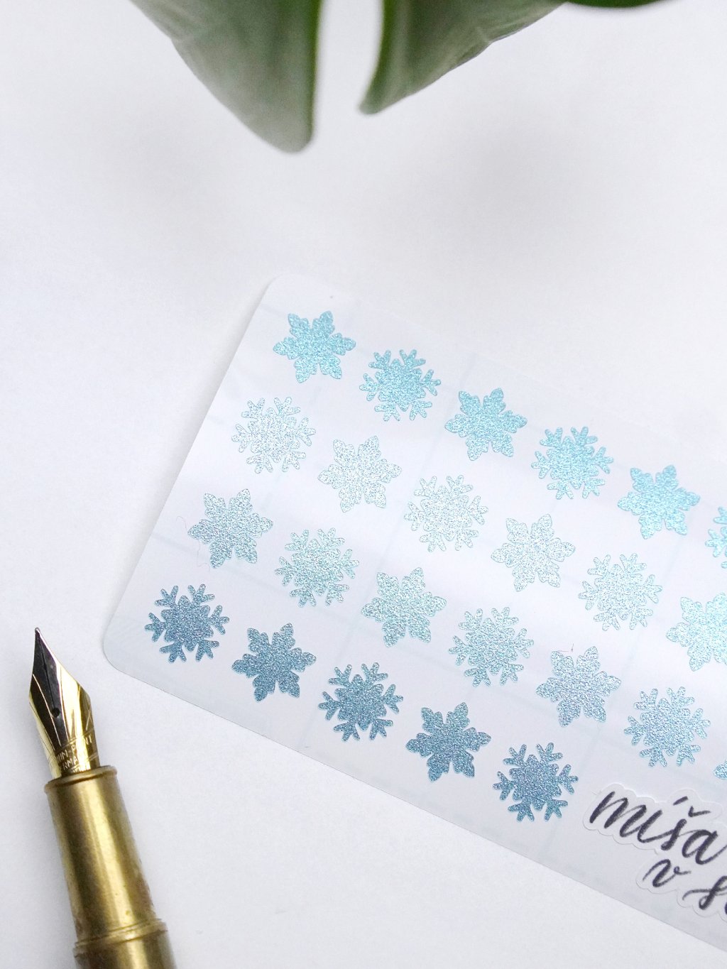 Malinké třpytivé sněhové vločky budou dokonalou vánoční a zimní ozdobou na každé party, na oknech, sklenicích, vánočních přáníčkách, ale také v diářích! Vinyl skvěle drží na různých hladkých materiálech, proto si se samolepkami třpytivých modrých sněhových vloček ozdobíte například i hrníčky, potravinové dózy nebo třeba šuplíky plné papírenských radostí. :) Skvěle budou držet i na deskách diáře nebo obalu na sluchátka.