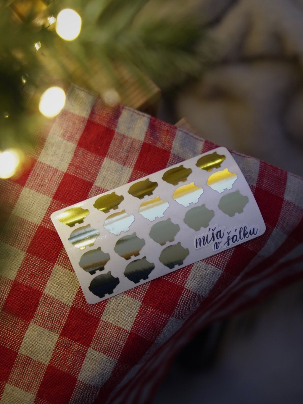 Vánoce bez zlatého prasátka? Kdo se alespoň jedinkrát nesnažil vydržet bez jediného ždibíčku cukroví až do štědrovečerní večeře, jako by nebyl. :) Zlaté prasátko však symbolizuje i štěstí a hojnost, a proto je častým drobným dárečkem v různých podobách. Zlatá lesklá samolepka prasátka ozdobí vánoční přáníčka, obálku s poukazem nebo třeba vánoční dárečky.