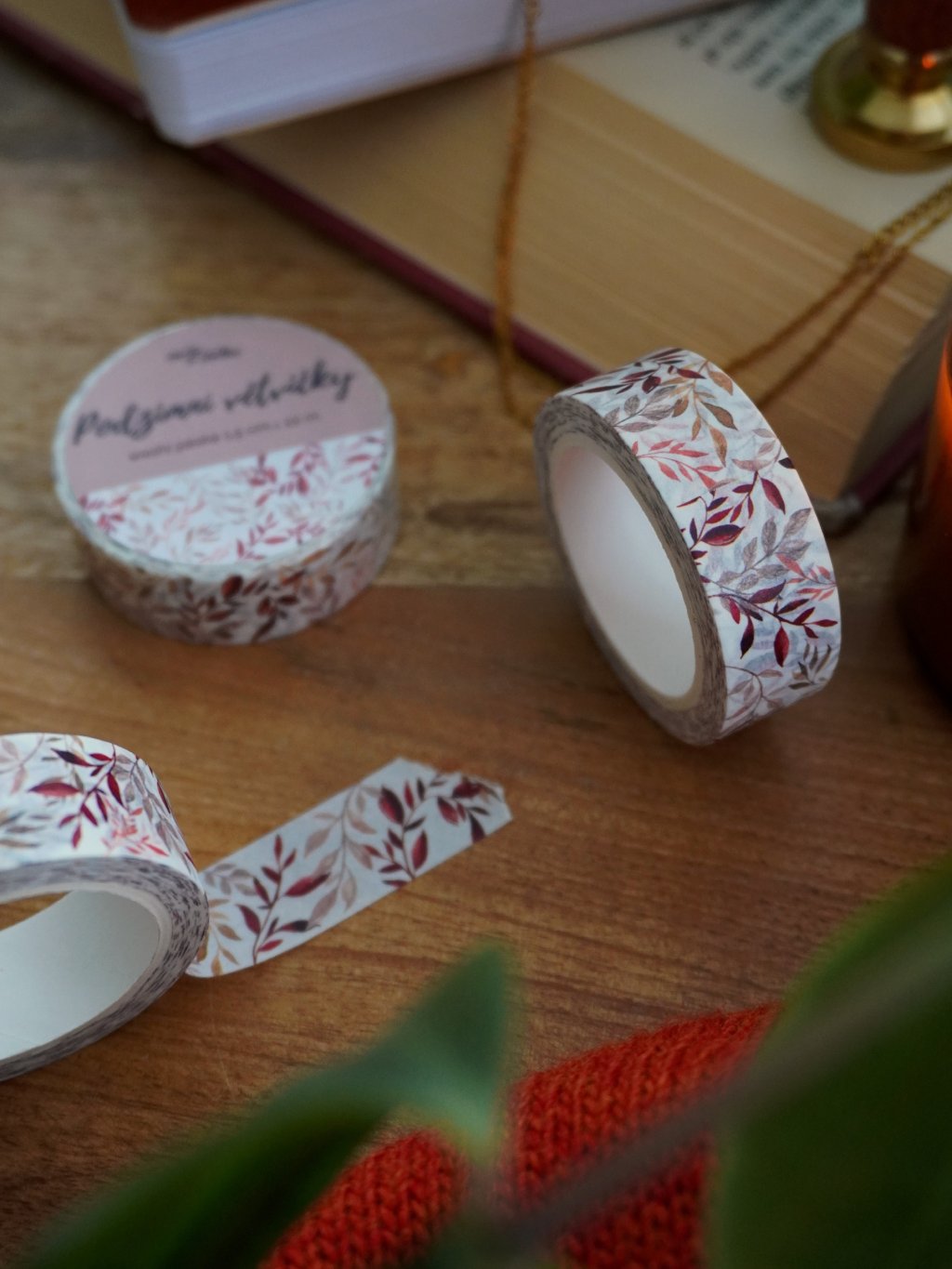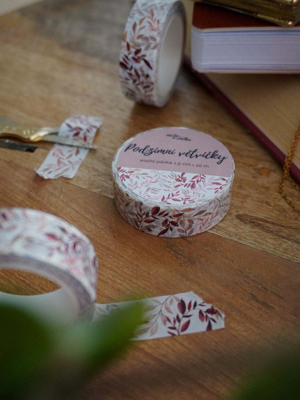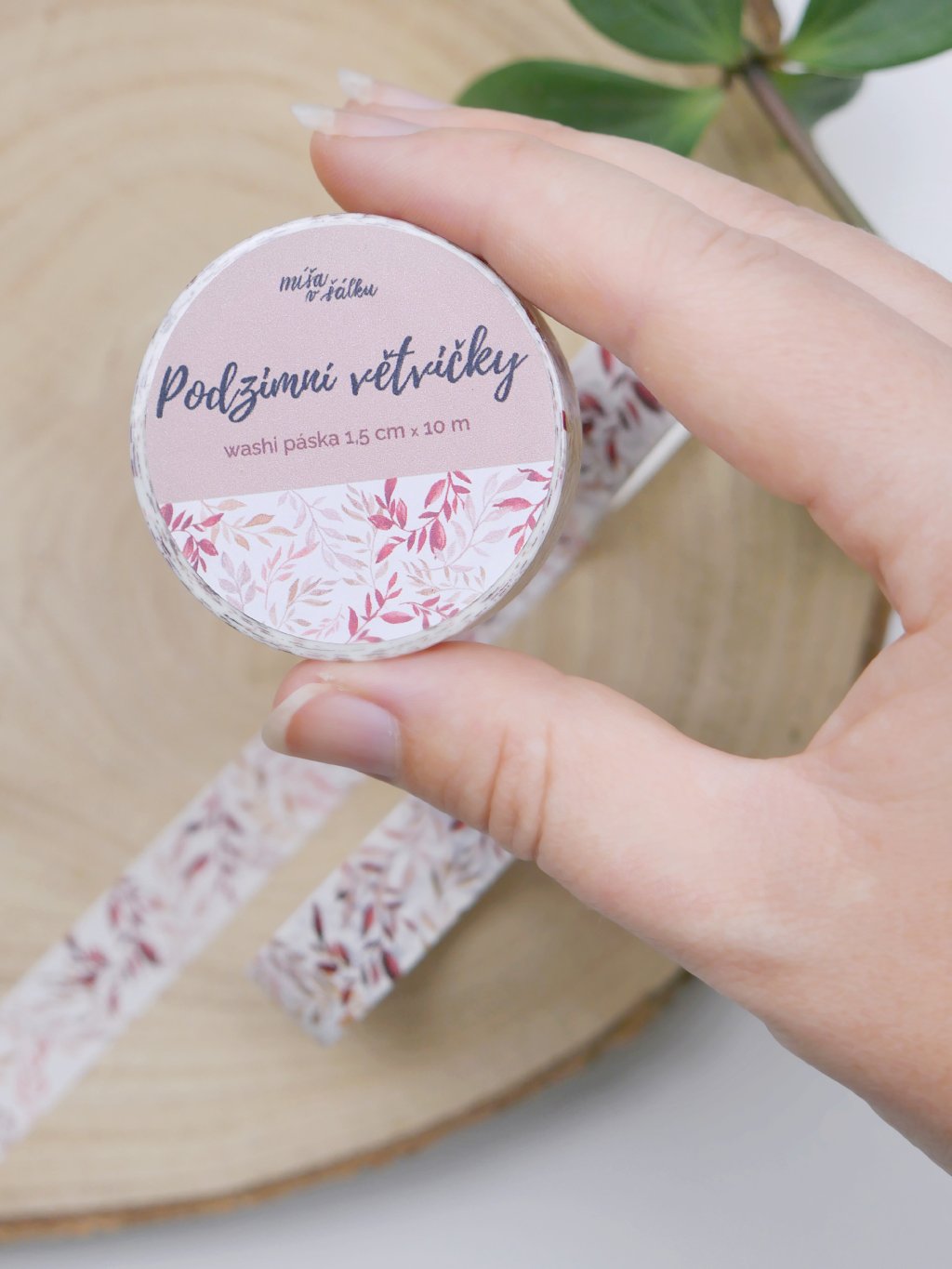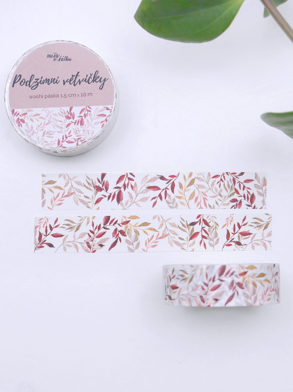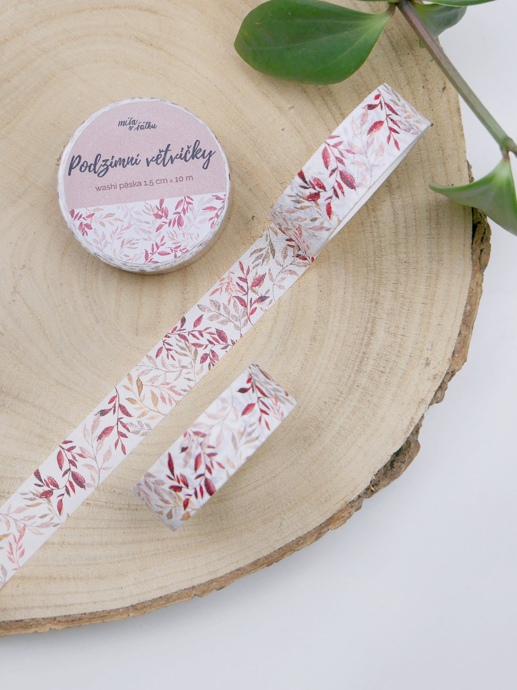 Washi páska je ozdobená autorskou ilustrací podzimních lístků a větviček na bílém pozadí. Využijete ji na zdobení diáře, k ozdobení fotoalba nebo třeba na přichycení fotek na stěnu.
