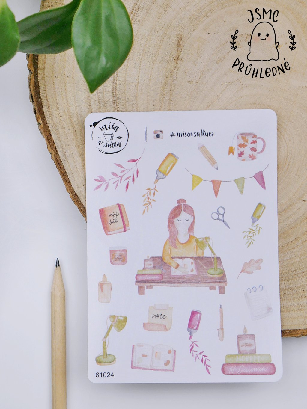 Není nad ten pocit, když se pootevřeným oknem proplíží studený říjnový vánek, který vám hravě převrátí pár stránek v diáři, obkrouží plamínek svíčky a připomene vám svou teplotou, že nejlépe je právě teď rozhodně doma, v objetí teplé deky. Tento aršík má v sobě přesně to, co každý milovník plánování a podzimu potřebuje - teplé podzimní barvy kontrastující s chladnějším počasím, barevné diáře, knihy, podzimní hrnek a spoustu svíček. A i právě proto se tolik hodí k naší letošní novince, svíčce se stejným názvem. Plánování s těmito samolepkami bude nejkrásnější právě v doprovodu vaší oblíbené svíčky, ať už té naší, nebo jakékoliv jiné. :)
