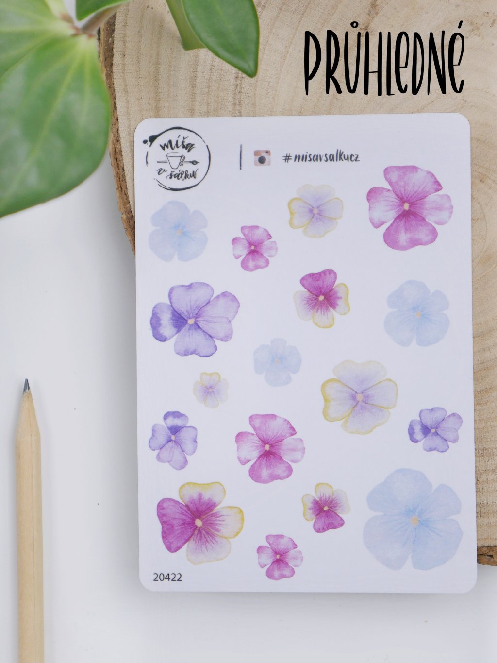Samolepky na washi průhledném papíře si zamilujete. Jsou tenké, lze je znova odlepit a prosvítá pod nimi podklad, na který je nalepíte. Zkrátka ideální materiál k tvoření nejen v diáři. :) Něžné samolepky s maceškami budete milovat. Mají krásné, jemné barvy, díky nimž vytvoříte stránky v diáři napříč celým rokem. Každý květ je v aršíku několikrát a v různých velikostech, tvořit s nimi proto můžete i přáníčka nebo jiné projekty.